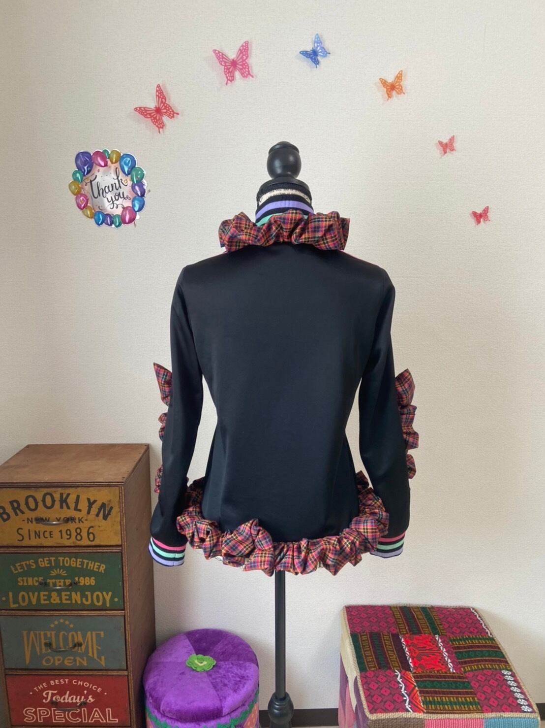 ジャージに付けるフリルの可愛さを出すために、あえて手縫いしています!ミシンでは出せない今までありそうでなかった古着リメイクジャージです。