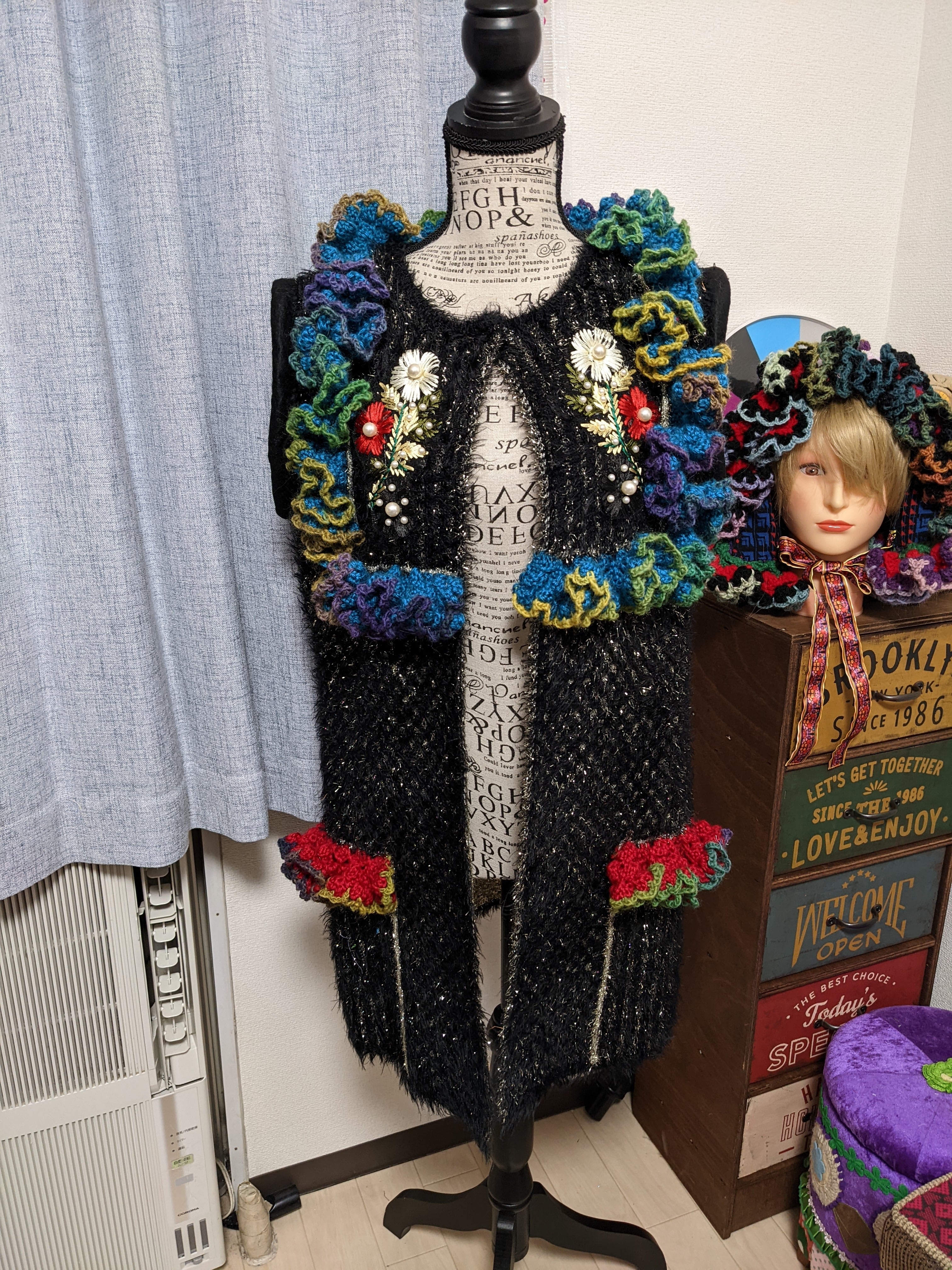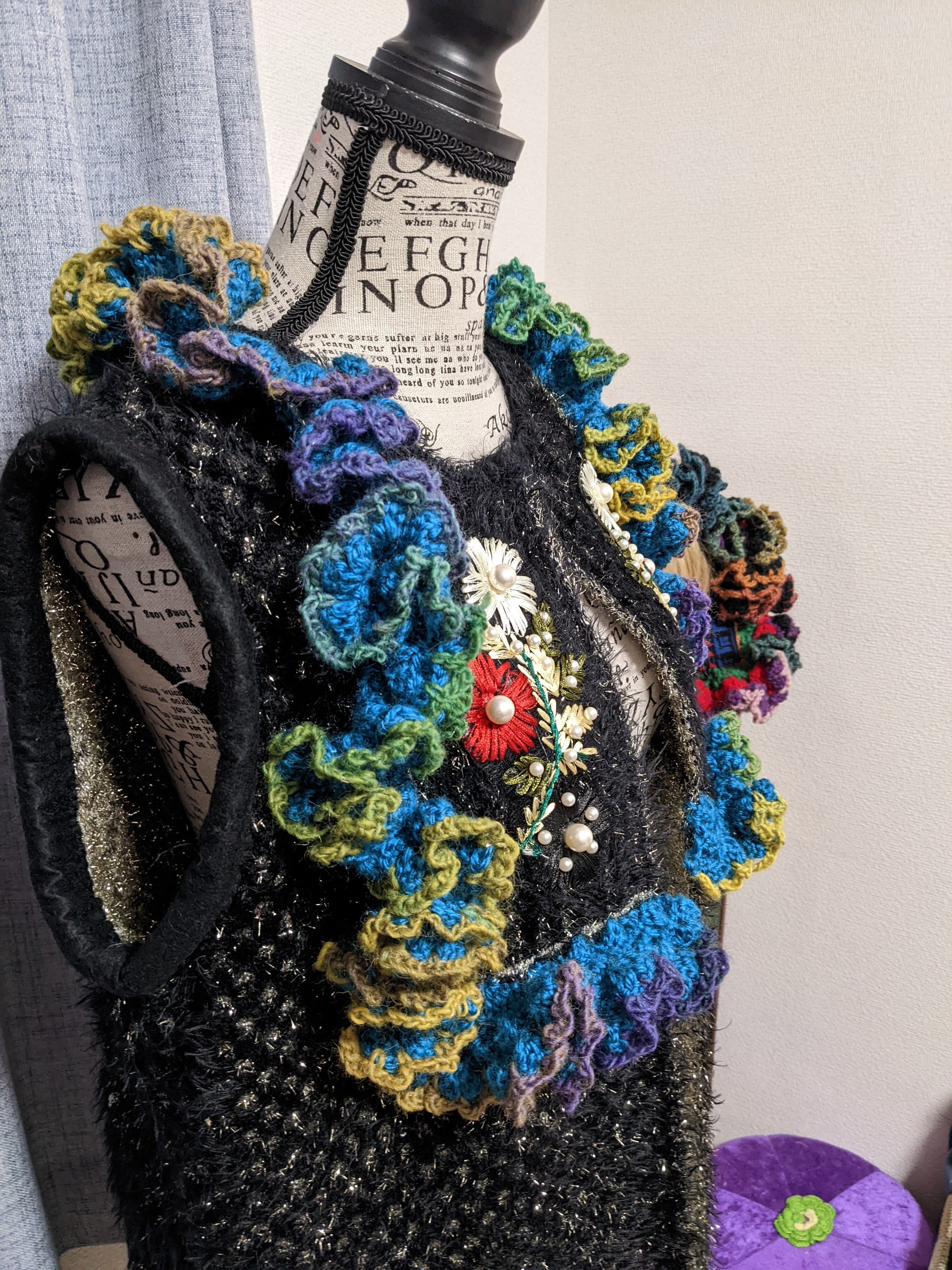 毛糸遊びの本気の遊びカーディガンをベストにして楽しくコーディネートしましょ〜。的なベストw