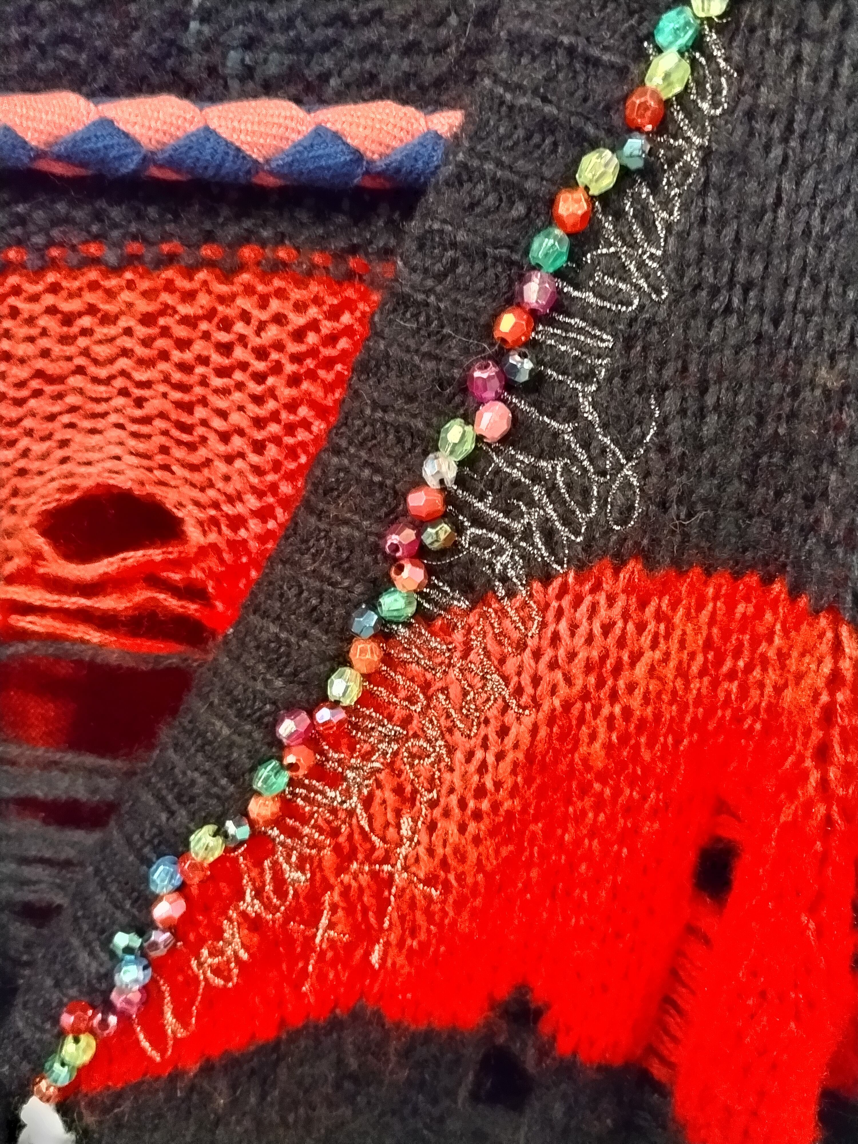 赤黒ボーダーダメージカーディガンいんざミントもじもじとカラフルビーズたち
