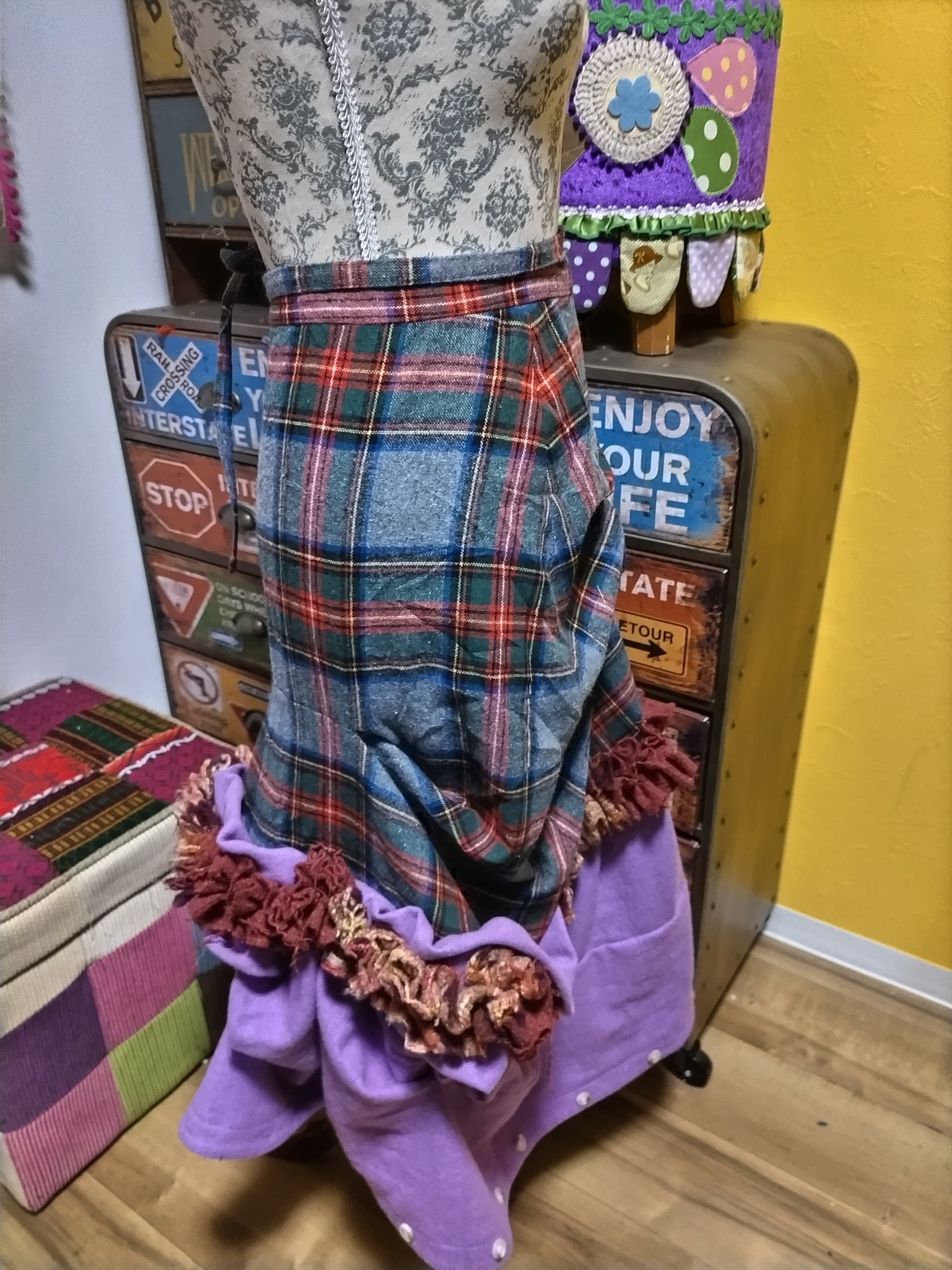 巻きスカートなのでフリーサイズですが、ウエスト太い(笑)私が。人は中にスカート重ねてはいてご覧あそばせ
