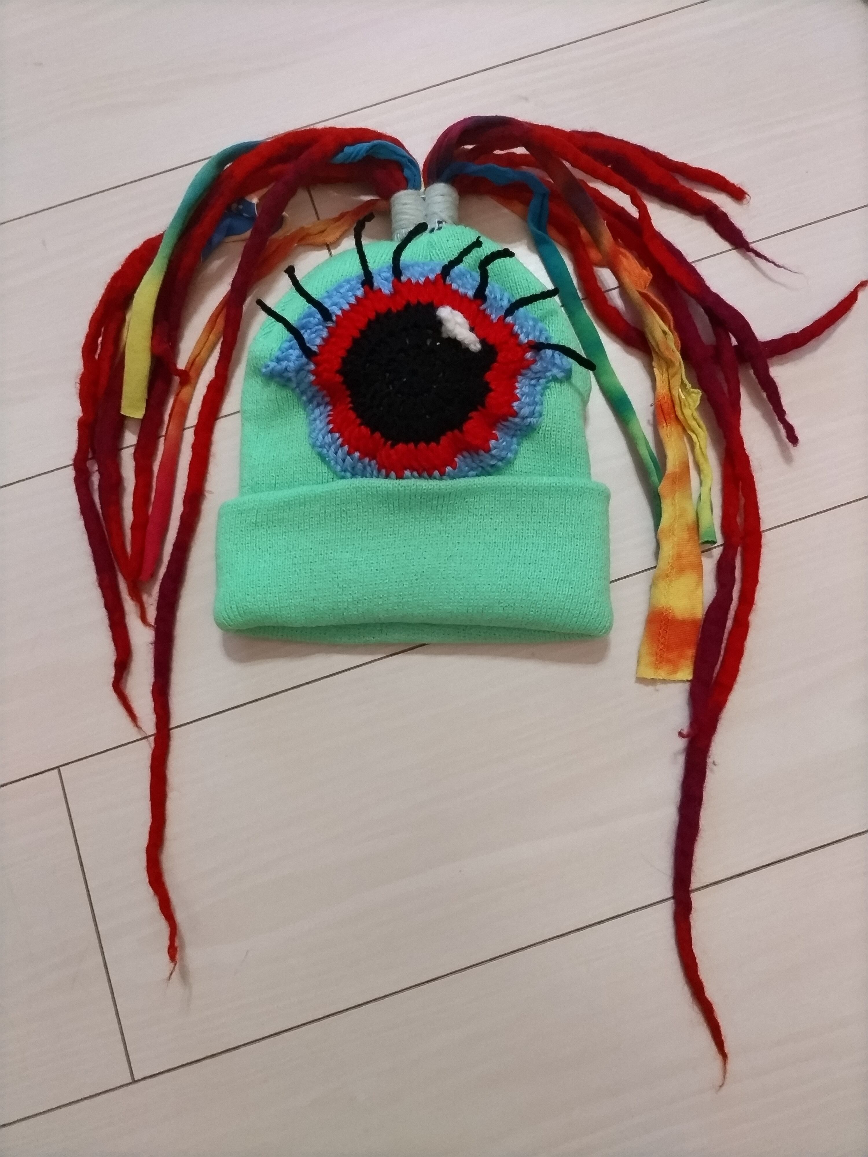 お試し充血してるやん宇宙人のニット帽子。まつげもあるよ